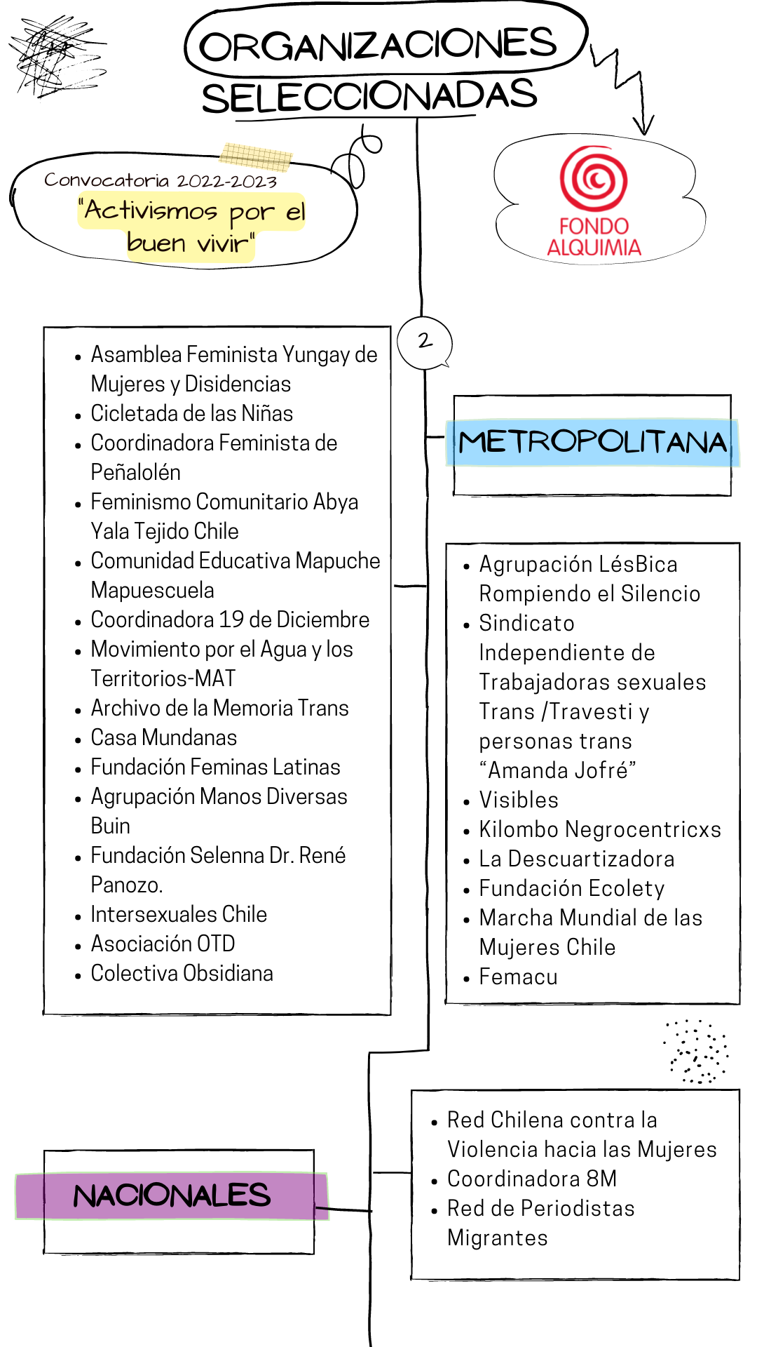 Creemos que las organizaciones seleccionadas se están haciendo cargo de cómo estamos viviendo las personas, identidades, pueblos indígenas, comunidades LGBTIQ+ y disidentes sexuales, migrantes y de la diversidad de mujeres que existen. La apuesta por activismos con perspectiva interseccional ha alcanzado la defensa de los recursos naturales, de las aguas y tierras, la violencia de género, los derechos sexuales y reproductivos y las luchas contra todas las formas de violencia, entre otras.